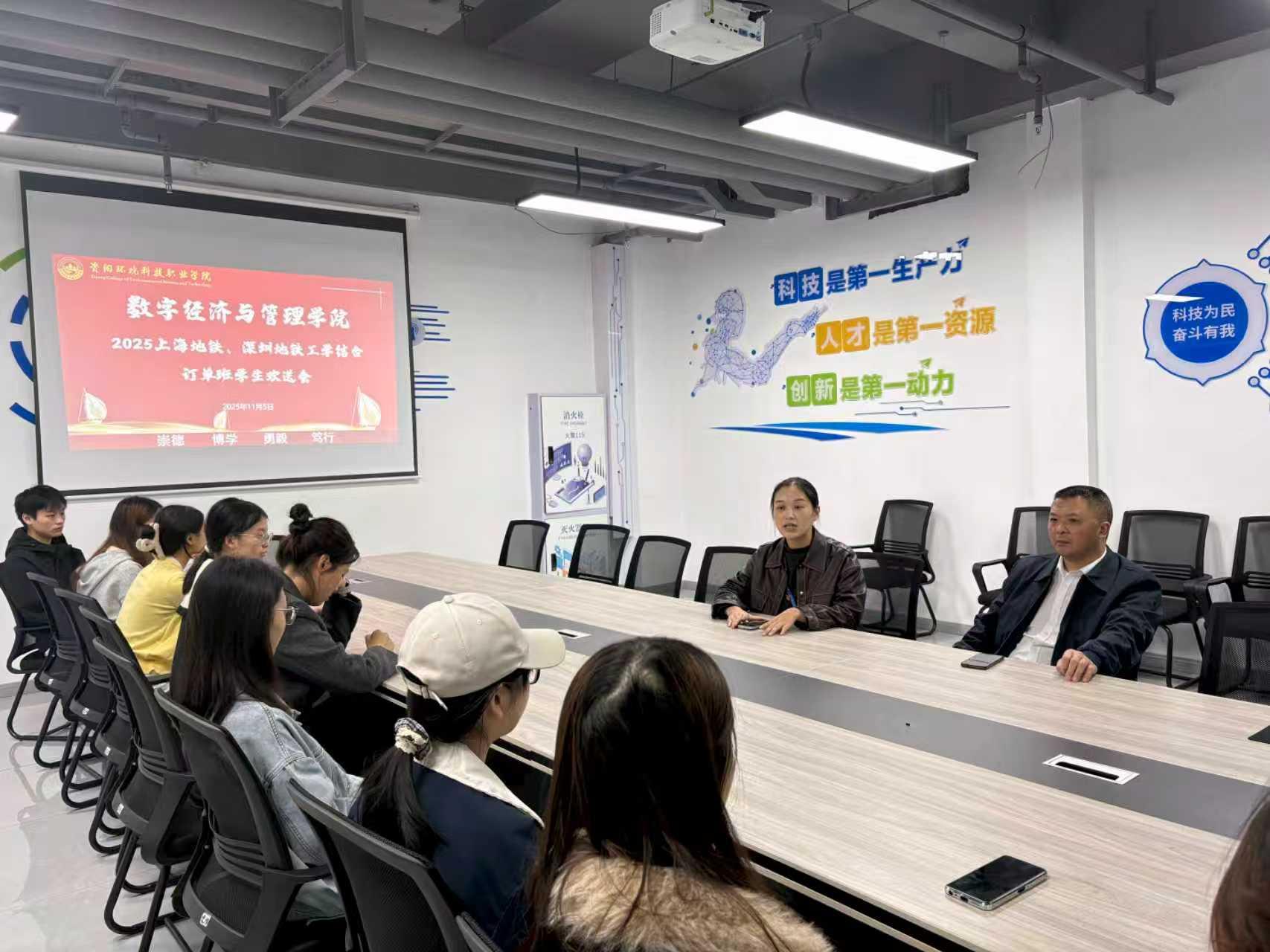 今日,数字经济与管理学院为2024级高速铁路客运服务专业学生举行了隆重的工学结合实践订单班欢送仪式。此次实践将组织学生于2025年11月6日分赴深圳地铁、上海地铁开展为期数月的岗位实践,深化产教融合,助力学生职业能力提升。学院党总支副书记魏显伦、院长助理宋周洪出席欢送会并发表讲话。