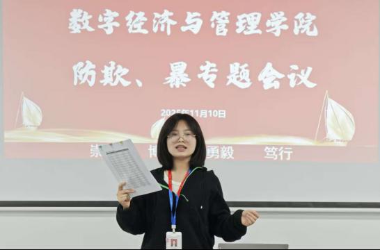 此次专题会议的召开,进一步统一了思想、明确了任务、压实了责任。下一步,数字经济与管理学院将以此次会议为契机,常态化推进防欺凌防暴力各项工作,持续营造安全、和谐、文明的校园环境,为学生健康成长保驾护航。