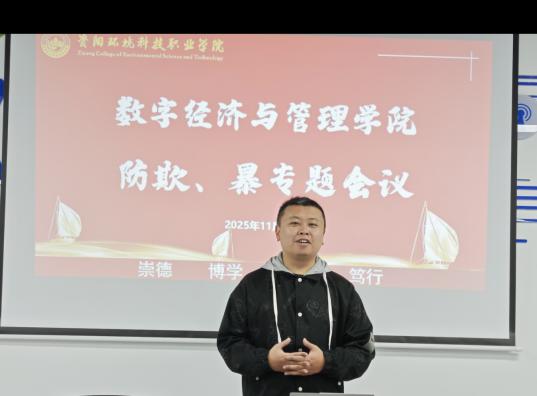 为深入贯彻落实上级教育主管部门及学校关于校园安全工作的部署要求,切实防范校园欺凌和暴力事件发生,保障学生身心健康与校园和谐稳定,2025年11月10日上午,数字经济与管理学院在学院102会议室召开“防欺凌、防暴力” 专题工作会议。会议由学院党总支副书记魏显伦主持会议,班子成员、全体辅导员、各教研室主任及学生工作办公室相关人员参加会议。