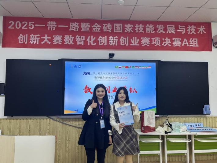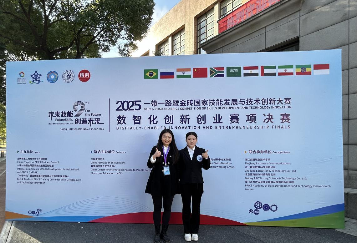 近日,2025年“一带一路”暨金砖国家技能发展与技术创新大赛数智化创新创业赛项全国总决赛在浙江交通职业技术学院圆满落幕。数字经济与管理学院学生胡柳佳慧、刘磊、姚吉组成的参赛队伍,历经选拔赛、决赛、总决赛层层严苛考验,从全国各省市院校的众多优秀队伍中脱颖而出,最终斩获全国总决赛金牌;此外,何仁杰、刘彦麟、周洁组成的团队同样展现出较强的竞争力,斩获三等奖,充分彰显学校在数智化创新创业人才培养方面的显著成效。