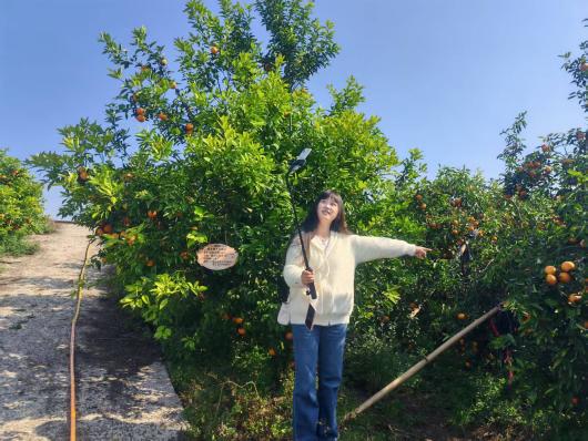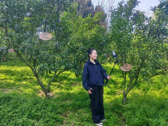 阳春三月,谢家湾柑橘果园基地内一派生机盎然。金黄的沃柑挂满枝头,正值成熟采摘的最佳时节;而一旁的耙耙柑果园里,果农正忙碌地进行修枝养护,为来年丰收打下基础。在教研室老师的指导下,学生们迅速进入状态,搭建起临时直播间,将镜头对准这片丰收的果园。