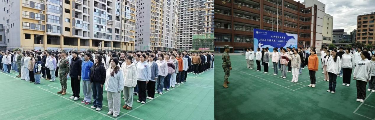 2026年3月35日,在巴中市职业中学的军训场上,一抹挺拔的军绿身影格外引人注目。他口令清晰、动作标准、作风严谨,以专业的军事素养和饱满的精神状态带领参训学生完成各项训练科目。这位英姿飒爽的教官,正是来自我校数字经济与管理学院旅游管理专业的优秀在校学子——宗贵平。作为一名光荣的退伍军人,他将军人的坚毅与旅管人的热忱带到了军训一线,以实际行动彰显了新时代大学生的责任与担当。
