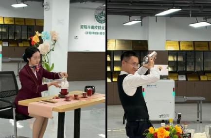 实操技能展示将直播氛围推向高潮。安检情景剧还原一线服务场景,普及安全出行与规范安检知识;茶艺与创意调饮展示融合传统文化与现代服务理念,彰显专业服务温度与品质标准;餐巾折花技能展示中,蜡烛、爱心、双荷花、帆船、竹子、枫叶六种创意造型精巧实用,充分体现餐吧服务的专业水准。