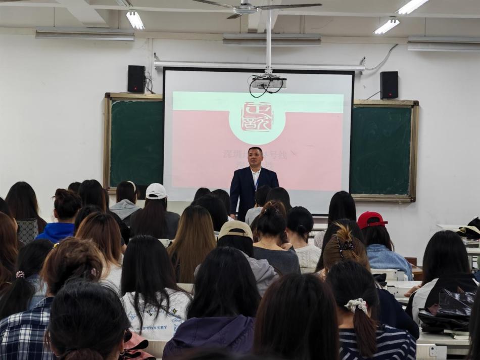 随后,深圳港铁人力资源部负责人登台宣讲。通过播放企业宣传片和生动的PPT展示,负责人详细介绍了港铁集团的发展历程、“铁路加物业”的创新经营模式以及在深运营的高标准服务体系。针对同学们最关心的职业发展路径,企业代表重点讲解了岗位需求、晋升机制及极具竞争力的薪酬福利体系,现场气氛热烈。