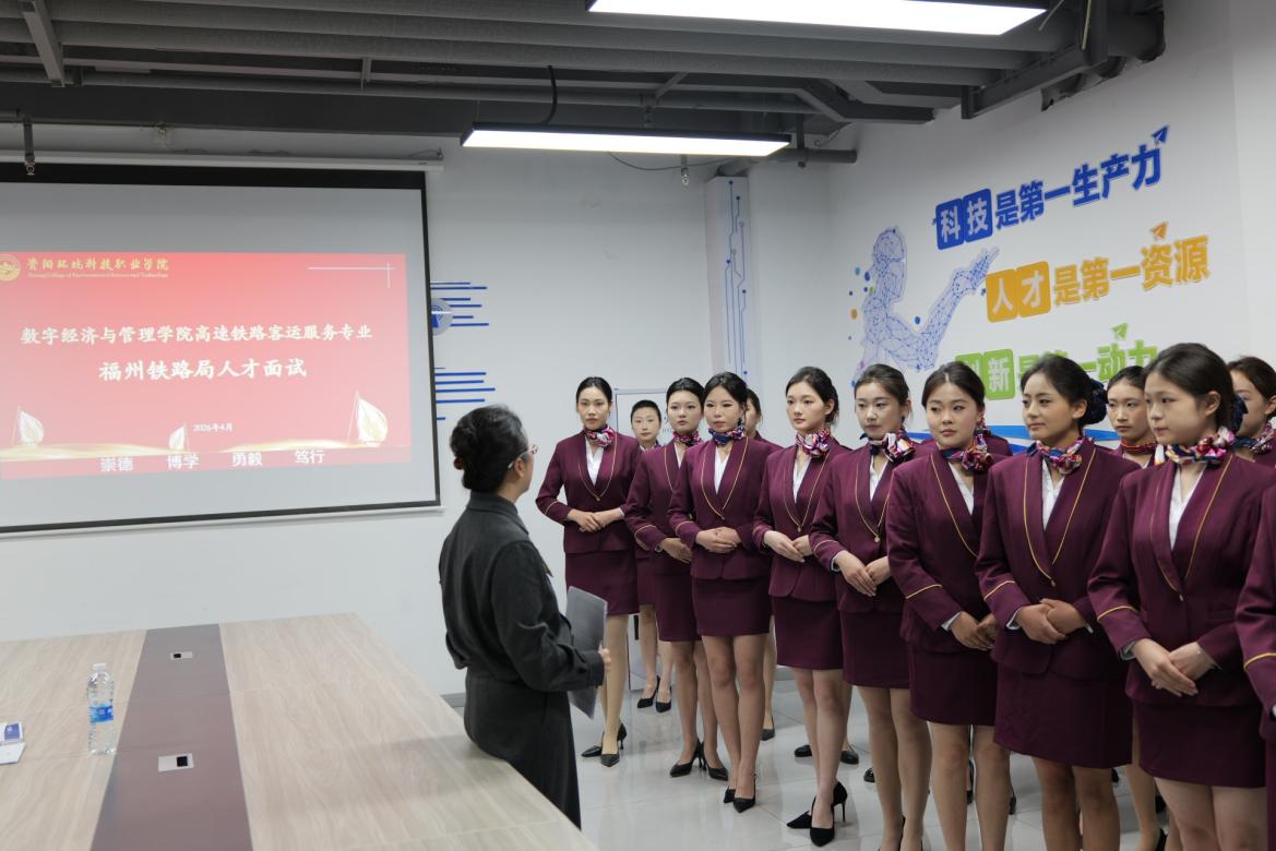 为深化产教融合、推进校企合作,精准对接铁路行业人才需求,4月16日,福州铁路局领导一行莅临我校数字经济与管理学院,在图书馆102会议室开展高速铁路客运服务专业专场面试。